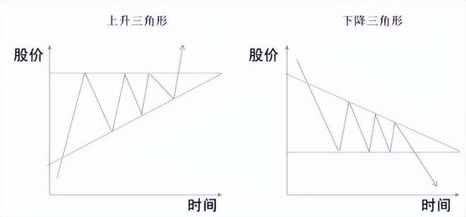 “上升三角形”“下降三角形”一般以直角的形态出现,因而也可以称之为直角三角形,如图2-1所示。