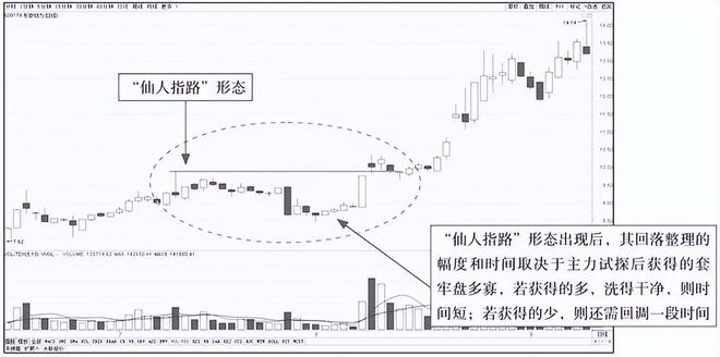 一般在涨幅尚小、未经连续上涨主升时出现,第二天一般收阳至少收平。这根K线既可以是一根阳线)K线图。可以看到,股价冲高到一定的价位后于7月11日收出一根带长上影线的K线,形成“仙人指路”形态。